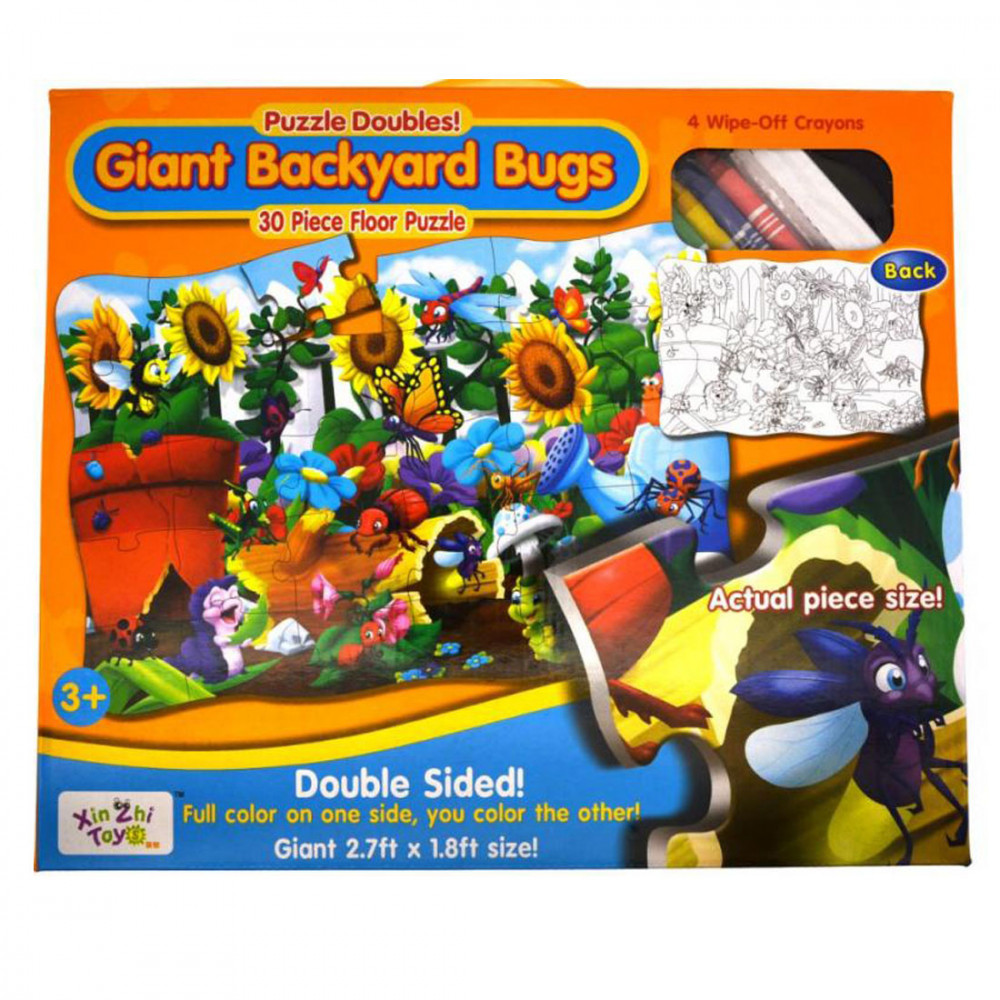 Ez a puzzle óriási! 30 darabból áll, ha kirakod, akkor 82x54 cm nagy lesz a kép, ráadásul a hátulját ki is színezheted, amihez mellékeltünk 4 színes zsírkrétát is.