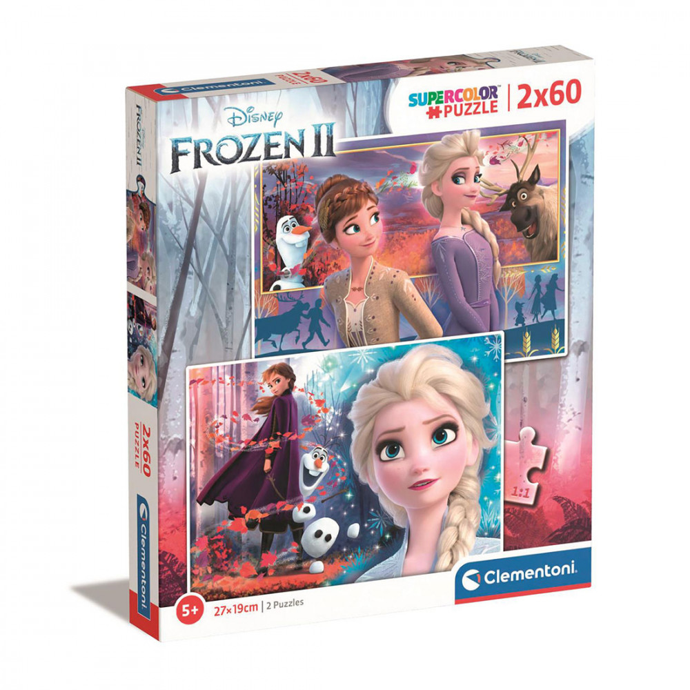 A Clementoni Supercolor puzzle, Jégvarázs 2, 2x60 db-os tökéletes ajándék minden kis Jégvarázs-rajongónak! A doboz két különböző 60 darabos puzzle-t tartalmaz, melyeken a Disney Jégvarázs 2 varázslatos karakterei – Elza, Anna, Olaf, Kristoff és Sven – elevenednek meg.