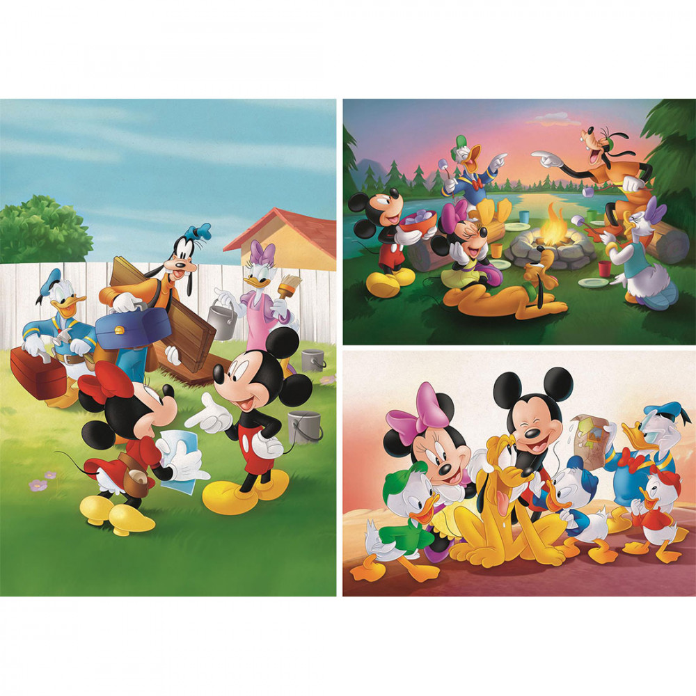 Mickey egér és legkedvesebb barátai hívnak most egy igazán vidám játékra. A 3x48 darabos puzzle képeinek kirakása közben felelevenítheted a sorozat legmókásabb jeleneteit.A mozaikdarabok könnyen egymásba illeszthetők. A puzzle játékok nem csak fejlesztik a memóriát, a megfigyelő és koncentrációs képességet, de türelemre és kitartásra is tanítanak.
