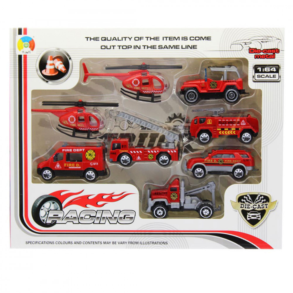 Racing fém tűzoltó jármű készlet, 8 darabos