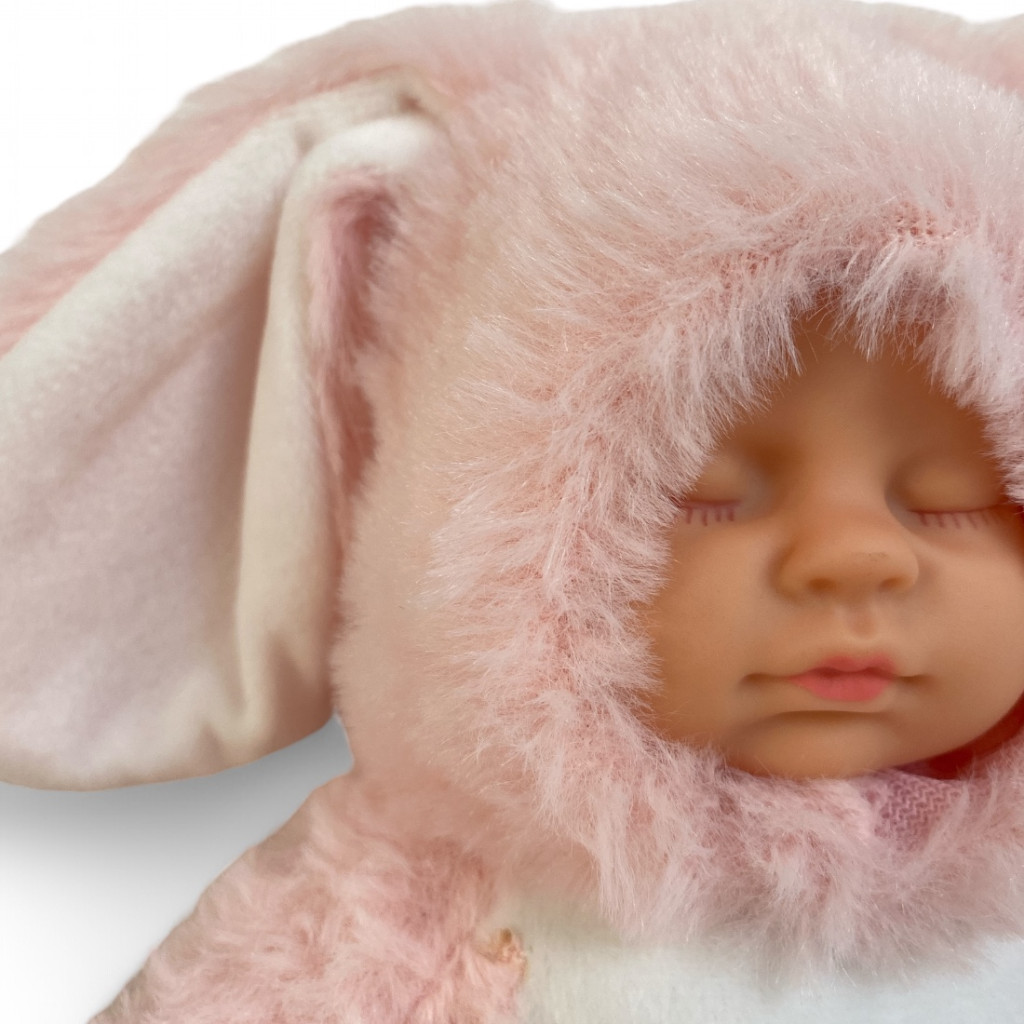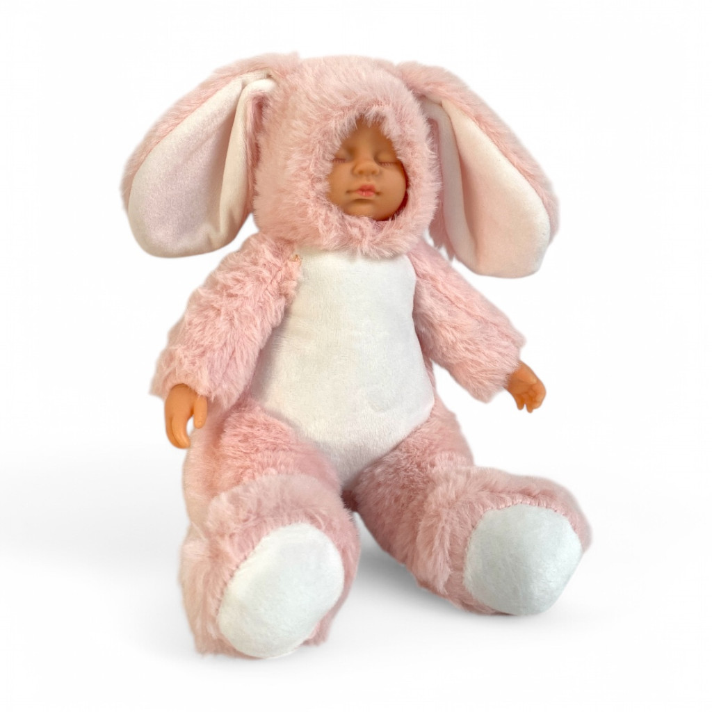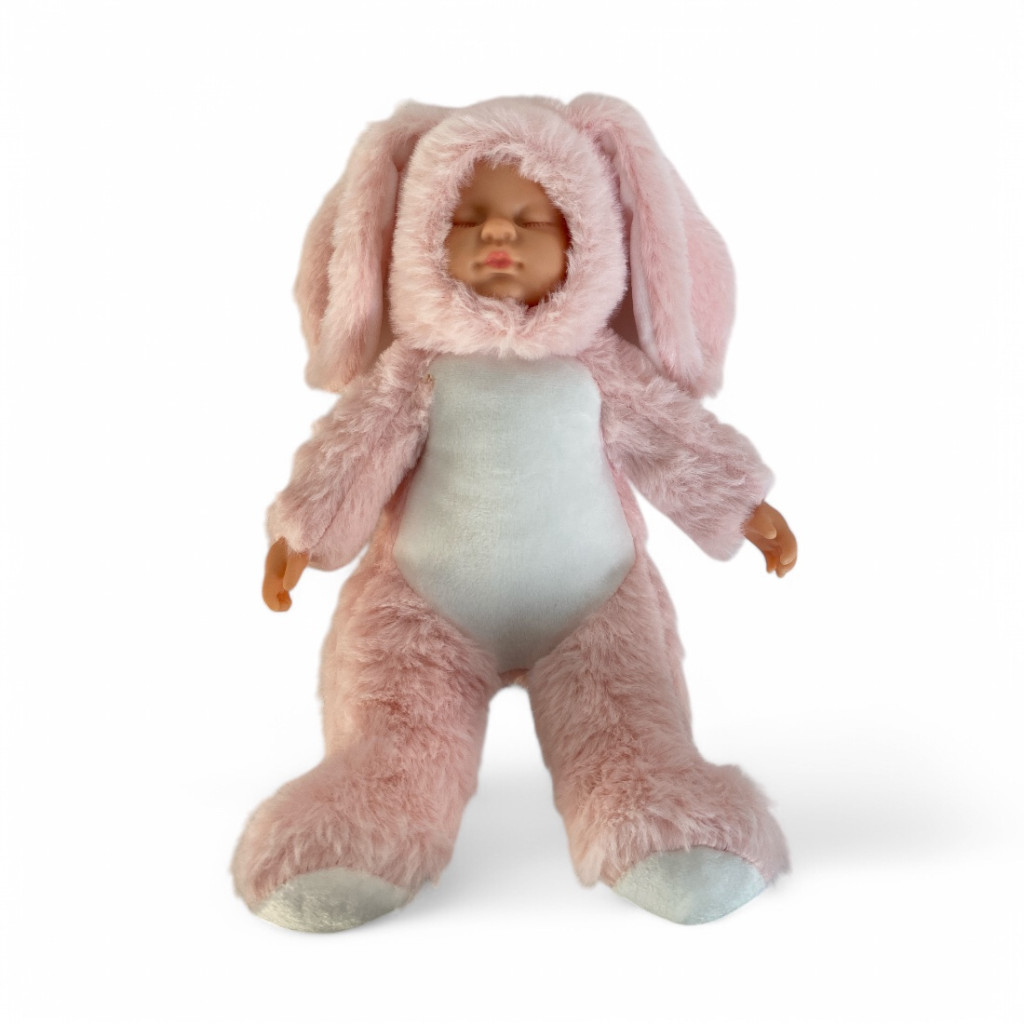 Engedd, hogy gyermeked elmerüljön a gondoskodás és a szeretet világában ezzel a bájos nyuszis plüss babával! A pihe-puha, rózsaszín nyuszis öltözék és a részletgazdag kidolgozás igazán különlegessé teszi ezt a játékot, amely nemcsak kedves alvótárs, hanem egy szerethető szerepjáték-eszköz is lehet.