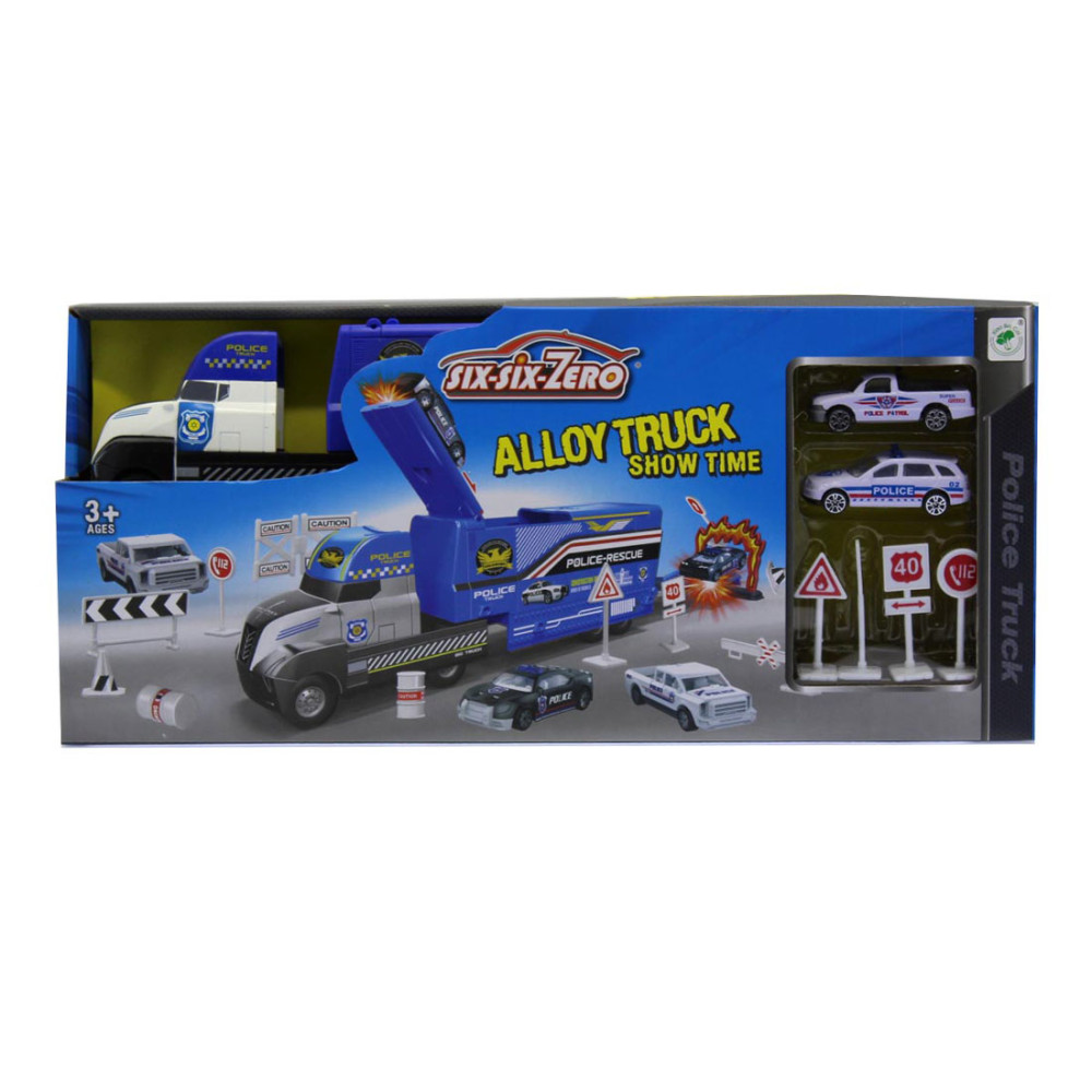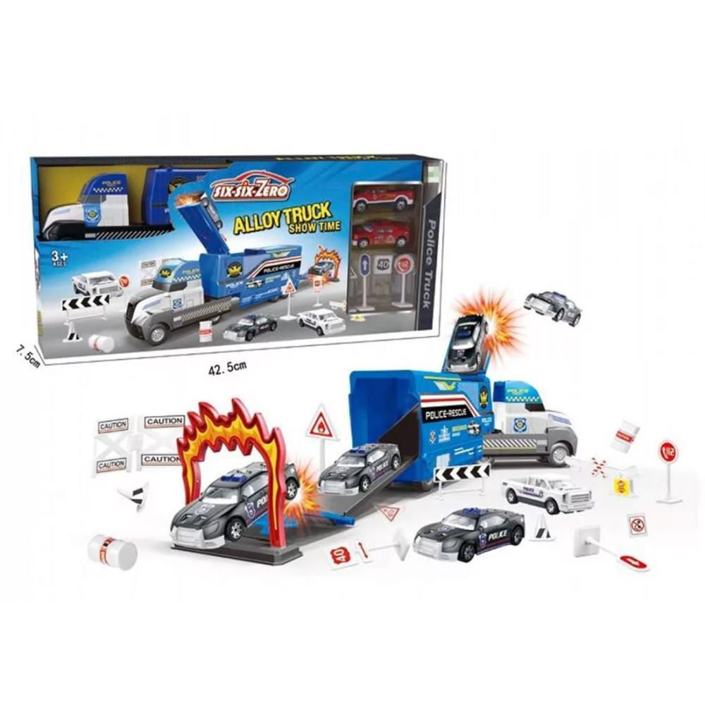 Te is voltál már olyan bemutatón, ahol a rendőrök vagy a tűzoltók kivonultak az autókkal és a felszereléseikkel, és megmutatták, hogyan dolgoznak, sőt még mindenféle mutatványokat is csináltak? Na, ezzel a rendőrségi felszereléssel te is tarthatsz ilyen bemutatókat. Rakd ki a táblákat, és szlalomozz közöttük, a fő attrakció pedig lehet az, hogy beállsz a kamionnal, felnyitod a tetejét, és a rendőrségi kocsival pedig ráugratsz, majd a kamion hátulján kivágódsz, át a tüzes karikán. Őrjöngeni fog a tömeg, ha ezt meglátja. A játék csomagolási mérete 42,5x19x7,5 cm. A kamion hossza kb. 30 cm. A játék tömege 585 g.