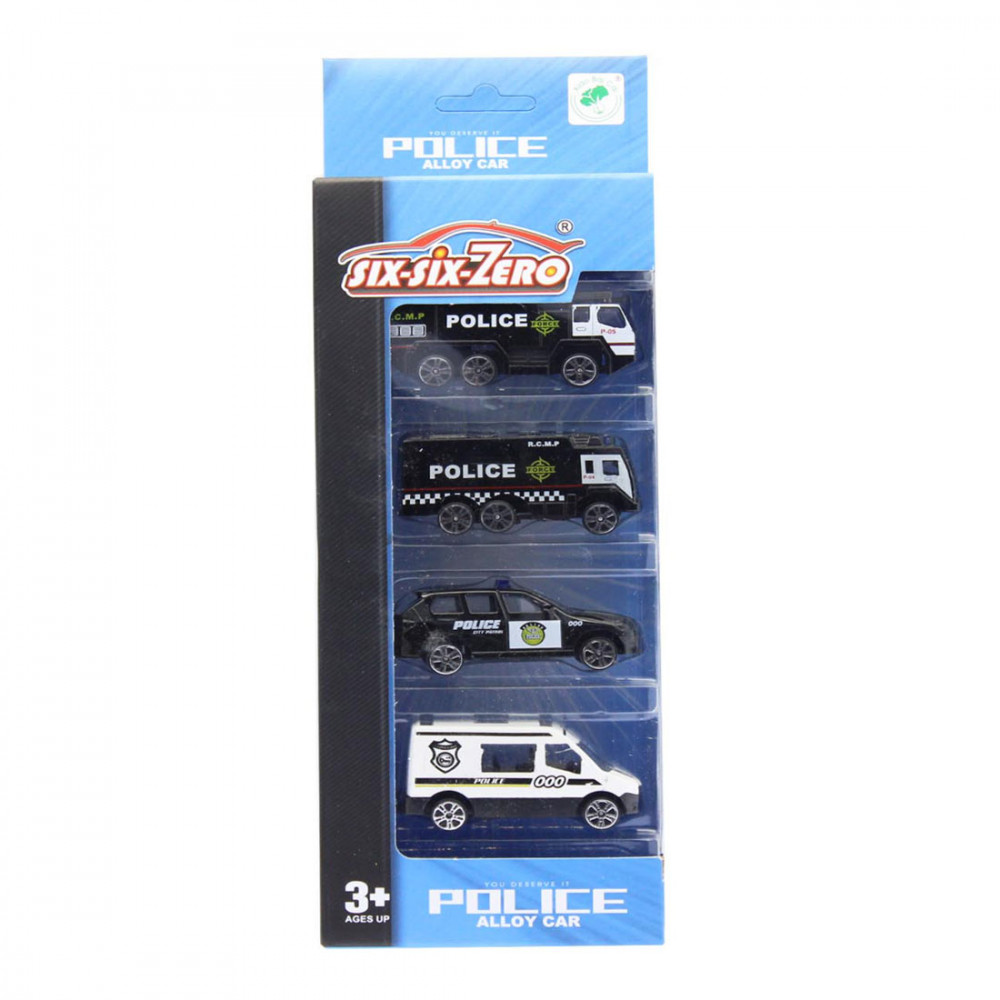 Megérkezett az erősítés, a rendőrségi járművek mind felsorakoztak a banknál, ahol nemrég bankrablás történt. Gyorsan kell cselekedni. Négy autó is a helyszínen van, köztük a rendőrparancsnok kocsija, a kisbusz, a csapatszállító, ami az erősítést hozta, és itt van szükség esetére a létrás vízágyus autó is. Már csak a bankrablókat kell kicsalogatni, és a túszokat kiszabadítani. A játék csomagolási mérete 10x25x4,5 cm. Az autók hossza kb.7 cm. A játék tömege 182 g.