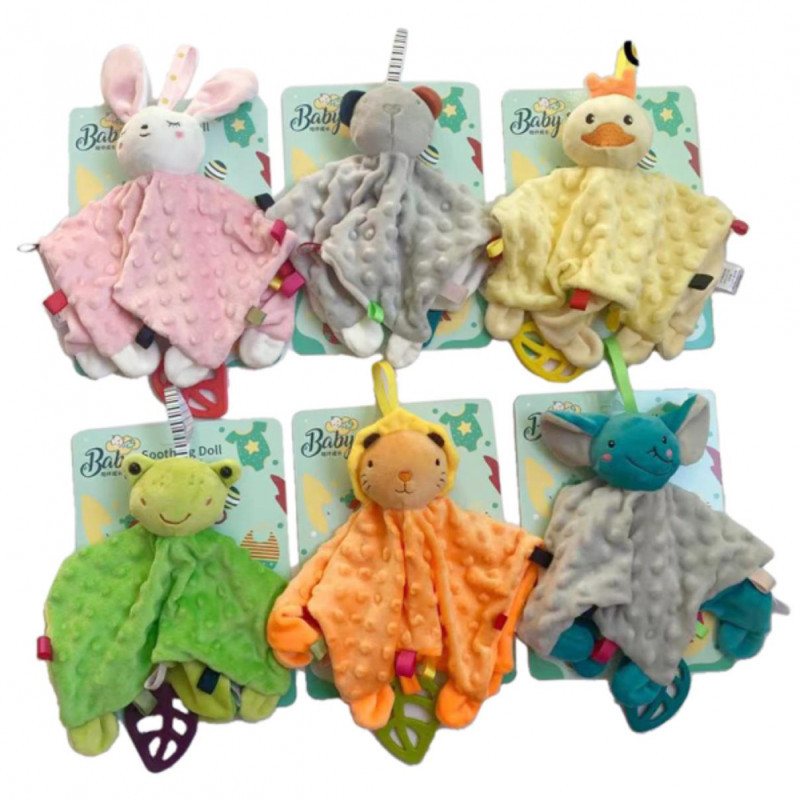 Puha csu-csu rongy rágókával, aranyos állatfigurákkal, amely megnyugtatja és szórakoztatja a babákat.