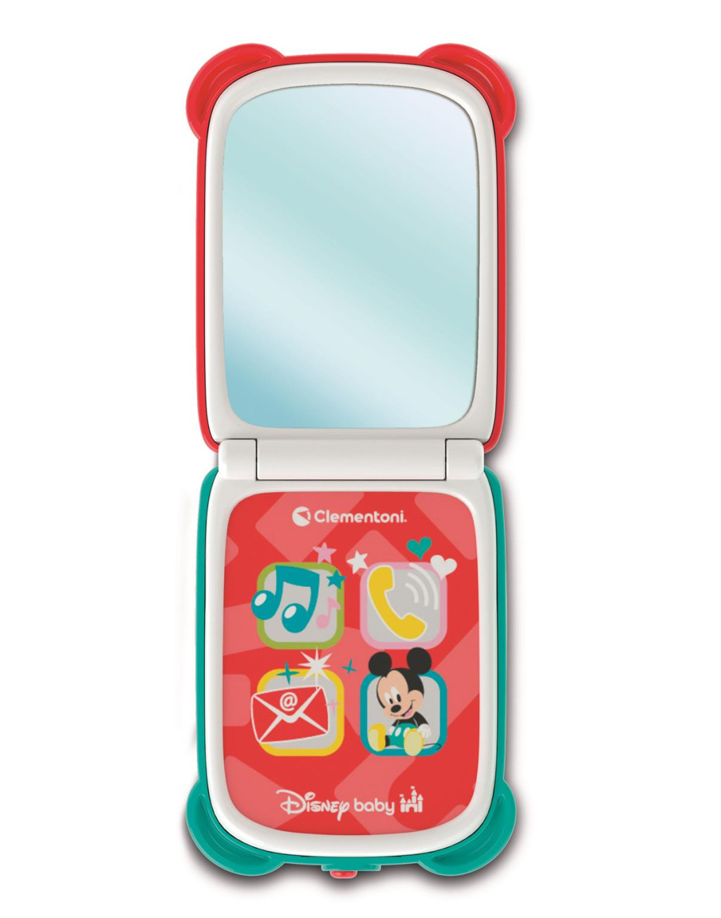 Fedezd fel a Baby Clementoni mobiltelefon, érintőképernyős, Disney Mickeyt, ami szórakoztat és fejleszt egyszerre! A színes gombok zenét, hangokat és fényeket indítanak el, miközben a tükörrel ellátott fedél ösztönzi az önismeretet. Tökéletes választás a legkisebbeknek 9 hónapos kortól!