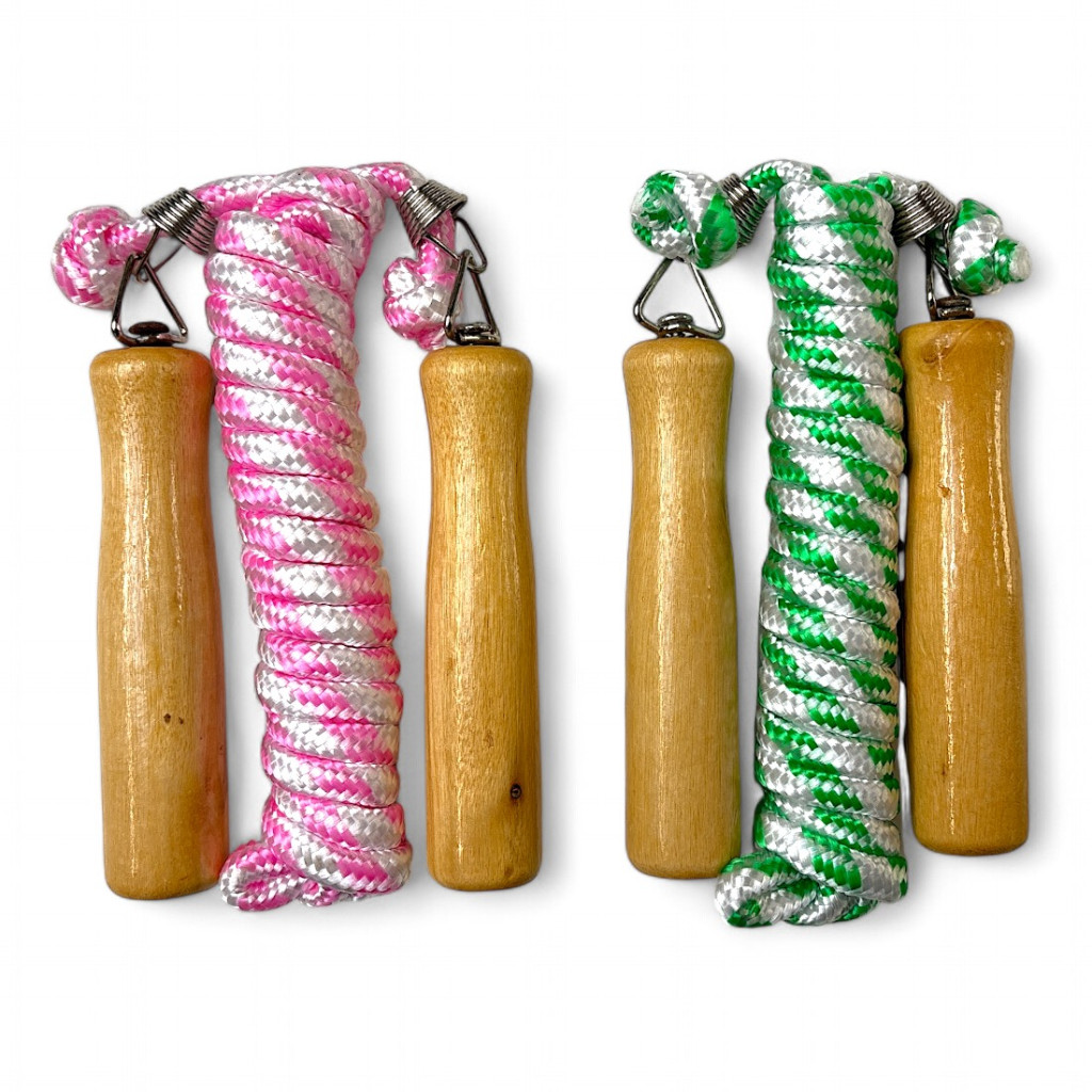 Lendülj formába ezzel a klasszikus fa ugrálókötéllel, amely kiválóan alkalmas gyermekek és felnőttek számára egyaránt! Az ergonomikus, fából készült markolat kényelmes fogást biztosít, miközben a strapabíró, színes fonott kötél gördülékenyen forog, lehetővé téve a gyors és dinamikus mozgást.