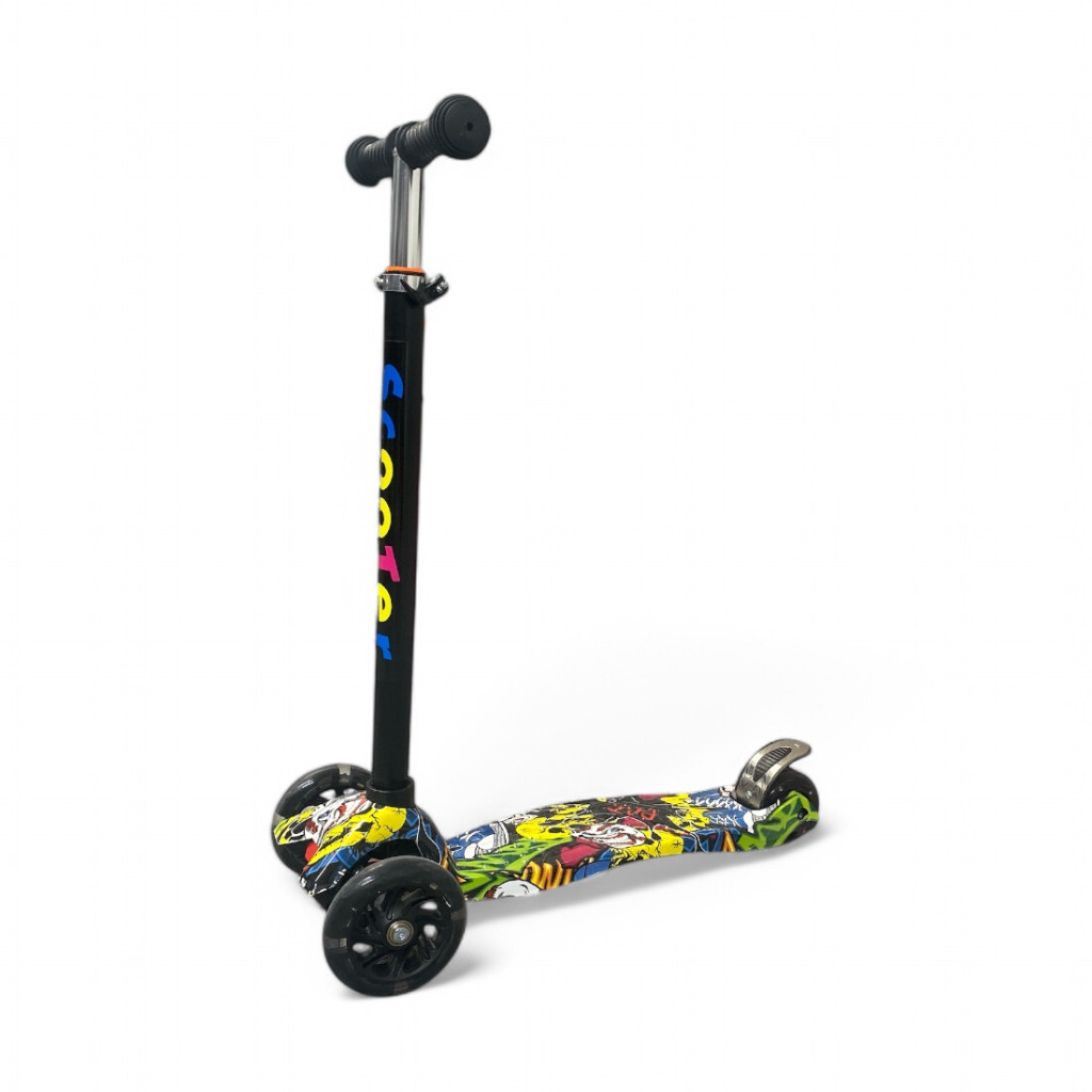 Fedezd fel a menő graffiti festésű rollert, amely garantáltan kitűnik a tömegből! A modern városi stílust idéző mintázata és élénk színvilága minden kalandvágyó gyerek és fiatal kedvence lesz.