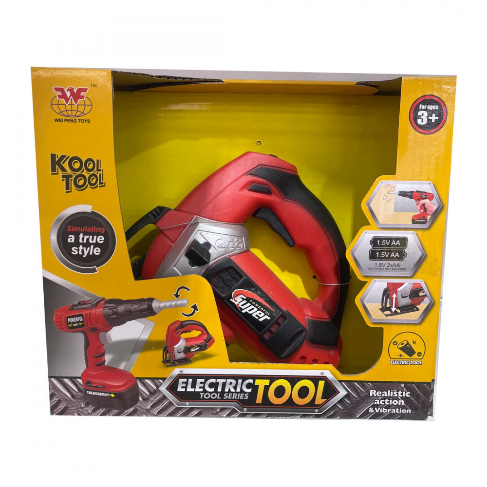 Ez a szórakoztató műanyag szerszámgép készlet lehetővé teszi a gyermekek számára, hogy kreatívak legyenek és kiprbálják a fűrész használatát.