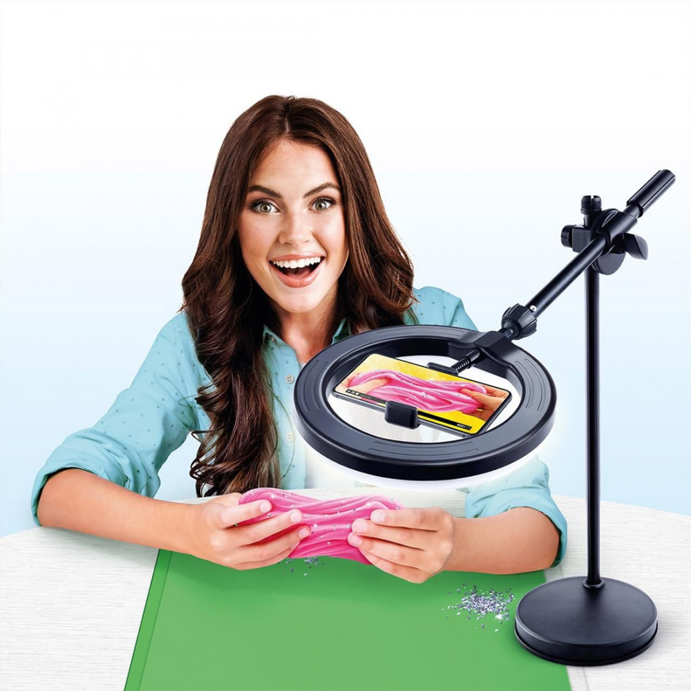 Most megmutathatod a nagyvilágnak, mit tudsz! Megérkezett a Studio Creator asztali videókészítő készlet, amivel profi felülnézetes videókat készíthetsz. Helyezd a telefont a tartóra, állítsd be a LED körfényt, és indulhat a felvétel. A csomag 4 különböző alátétet tartalmaz, ami háttérként szolgálhat a felvétel tárgya alatt. Ráadásul az egyik zöldvászon, így bármit a kezed munkája alá varázsolhatsz.