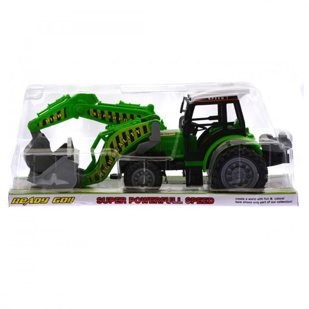 Minden kisfiú szeret képzeletben munkagéppel dolgozni. Hát még ha olyan klassz járgánya lehet, amin kétféle célszerszám is található: egy markoló és egy tolólapát. Attól függően, hogy milyen a játék és a fantázia, használhatja az eszközöket felváltva, vagy akár úgy is, hogy az egyiket a traktor elejére, a másik a hátuljára teszi fel.