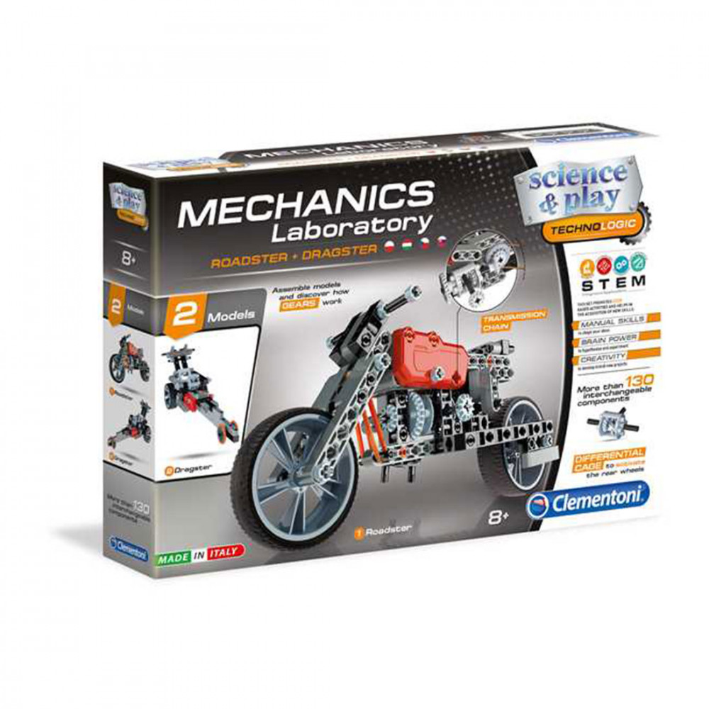 Vesd bele magad a mechanika világába a Clementoni - Tudomány és játék - Mechanikus Műhely játékszettel! A készletben található, több mint 130 cserélhető alkatrészből (fogaskerekek, felnik, gumiabroncsok, tárcsák és rudak) kétféle modellt tudsz megépíteni: egy dragstert és egy roadster motorkerékpárt. Ehhez segítség képen találsz a dobozban összeszerelési útmutatót. Kísérletezz, építs és tanulj!