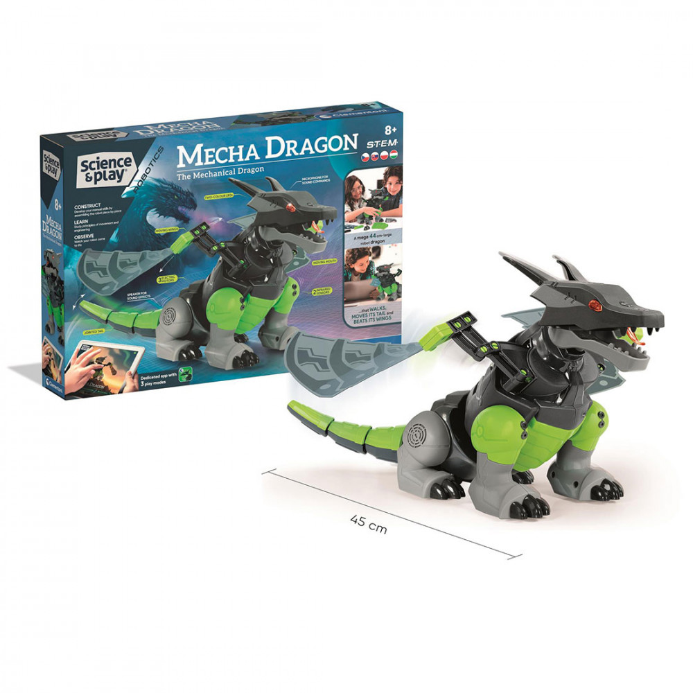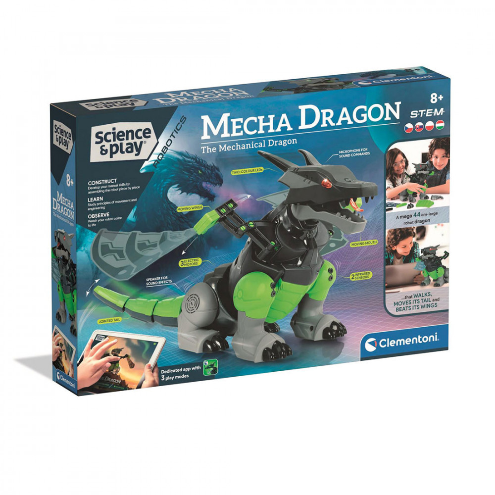 A Clementoni fantasztikus, tudományos készletével egy mechanikus, motor segítségével működő sárkányt hozhatsz létre, amely képes kölcsönhatásba lépni veled és a környezetével, köszönhetően a 3 motornak és a végtelen kalandok több érzékelőjének!