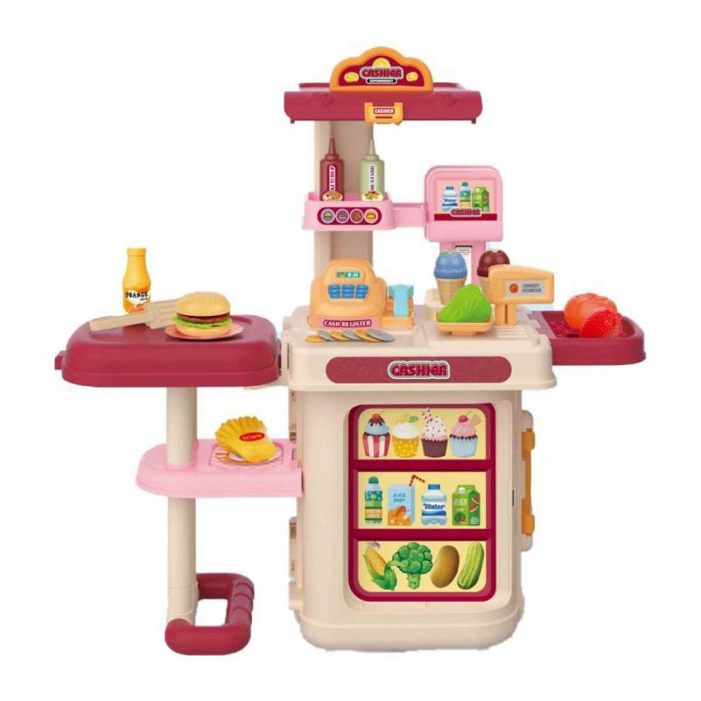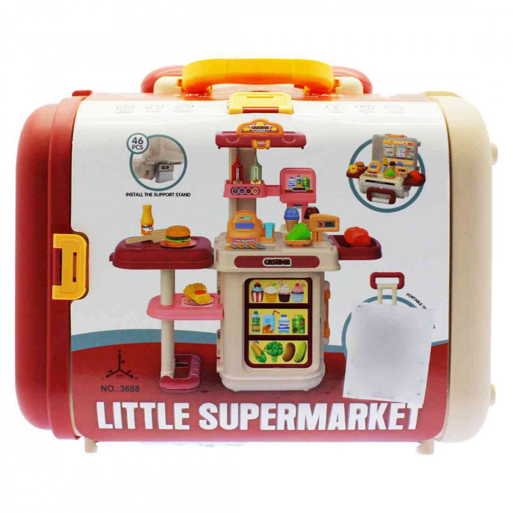 Ez a kis bőrönd sokkal többet rejt magába, mint azt bárki elsőre gondolná, hiszen pillanatok alatt egy szupermarketté alakítható. A szett egy nagyszerű és praktikus bőröndben kapott helyet, ami nem csak azt teszi lehetővé, hogy a játék tartozékai egy helyre kerüljenek, hanem arra is remekül alkalmas, hogy asztalt vagy pultot alakítsanak ki belőle a gyerekek.