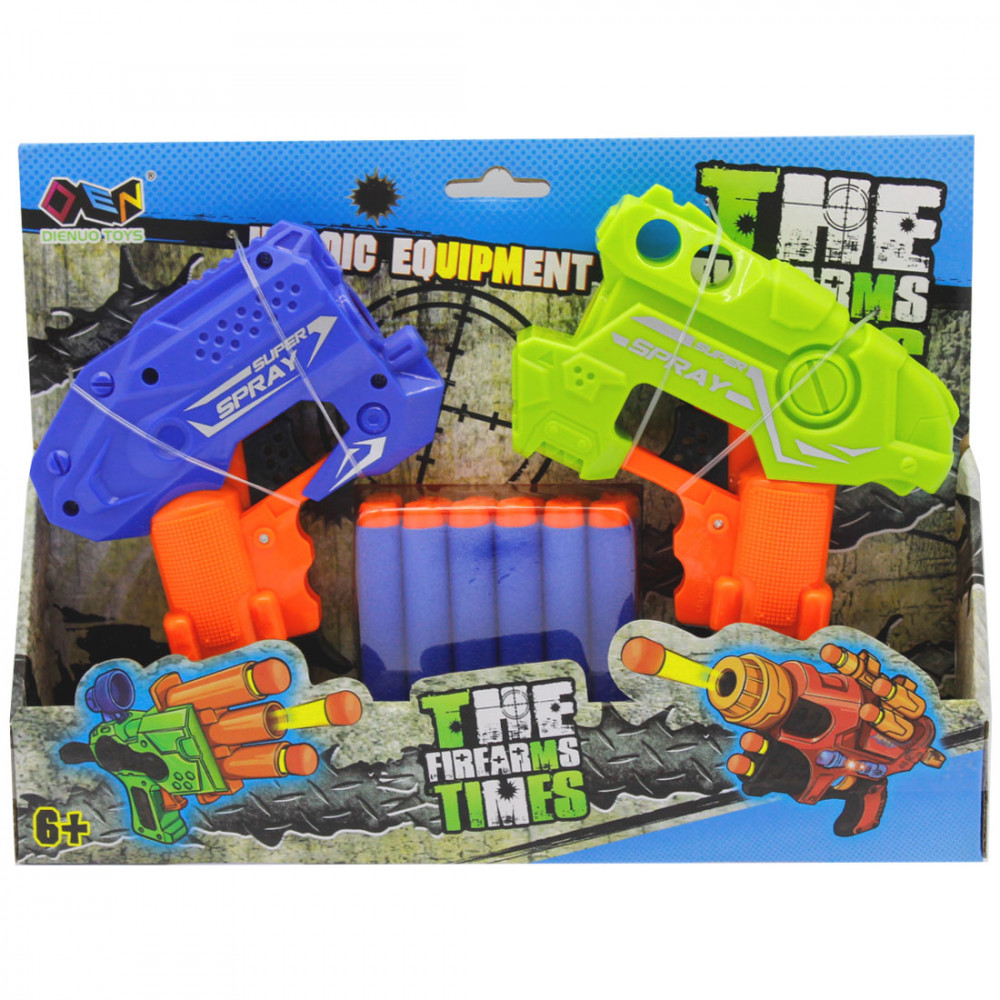 2 pisztoly és 12 szivacslövedék található a csomagban, amivel nagy csatákat vívhattok a barátaiddal, vagy akár célba is lőhettek. A játék csomagolási mérete 28x20x5 cm. A játék tömege 251 g.
