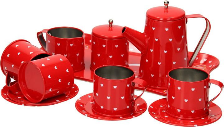 Apró fehér szivecskék díszítik a kávés készletet. A babáid már alig várják, hogy szólj nekik, hogy elkészült a kávé, és boldogan fognak szaladni, hogy együtt szürcsölhessétek a finomságot ebből a szépséges készletből!