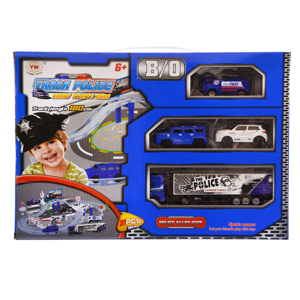 Először építsd ki a pályát, tegyél bele felüljárót is! Az út mentén rakd ki a jelzőtáblákat, és kezdődhet is játék, az autós üldözés. 3 rendőrségi járművet is találsz a készletben, köztük egy kamionnal. A kedvenced valószínűleg mégis inkább az az autó lesz, amelyikbe elemet lehet tenni, és a kaszniját is le tudod cserélni.