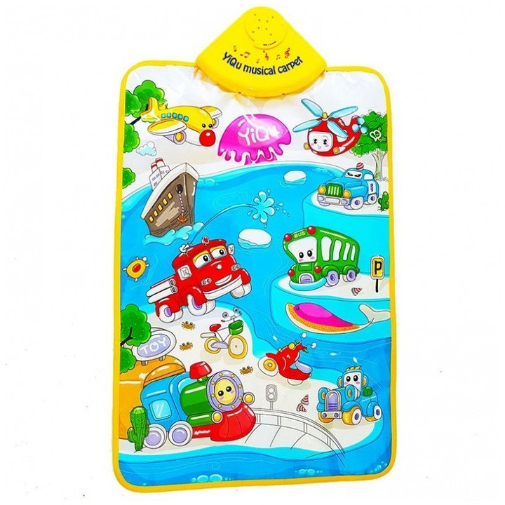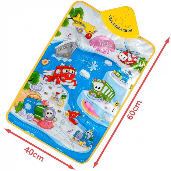 A zenélő szőnyeg először az élénk színekkel fogja meg a kicsik figyelmét, aztán pedig a hangjával. Remek szórakozást nyújt hosszú időre, hiszen van itt minden, ami csak kell: hajó, repülőgép, tűzoltóautó, motor, autó, rendőrautó, bicikli és helikopter! Játsszatok, és tanuljatok közben a közlekedésről!