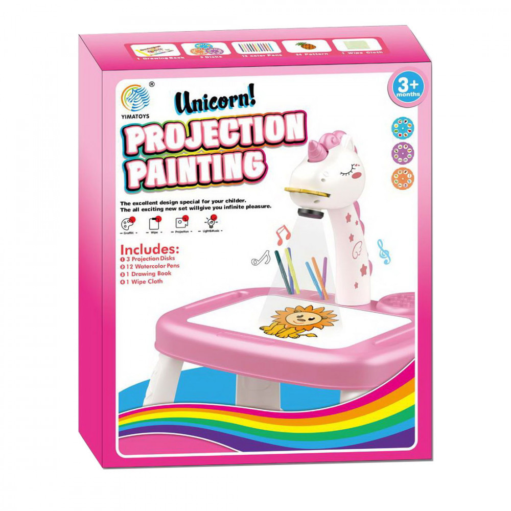 Elemes projektor és rajzolótábla készlet aranyos unikornisos mintával és 6db filccel, ami biztosan azonnal minden kislány kedvence lesz. Egyszerre szórakoztató és fejlesztő játék sok lehetőséggel.