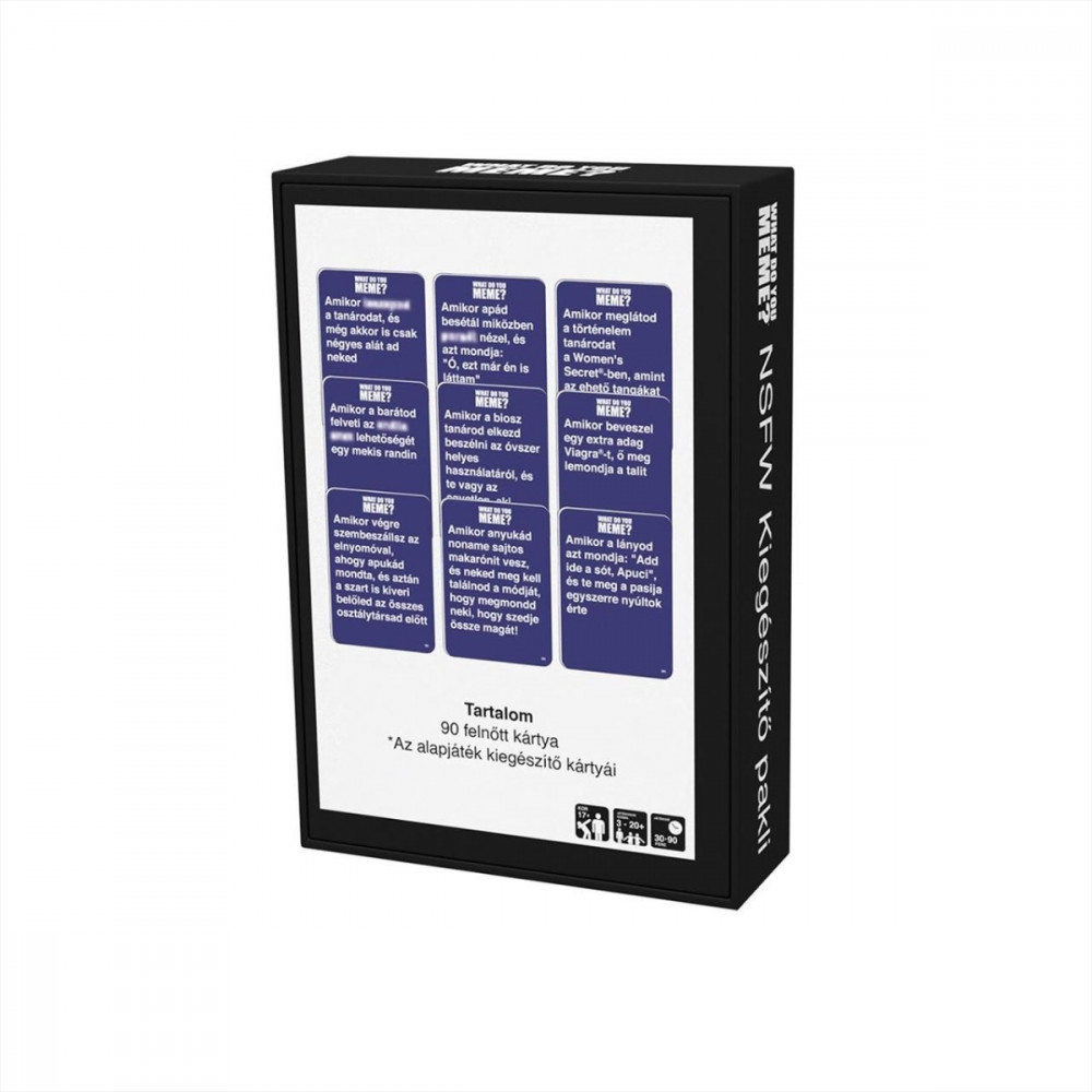 A What Do You Meme? NSFW kiegészítőt szigorúan csak 18 éves kortól ajánljuk. A What Do You Meme? mém partijátékba egyszerre akár 3-20 fő csatlakozhat.
