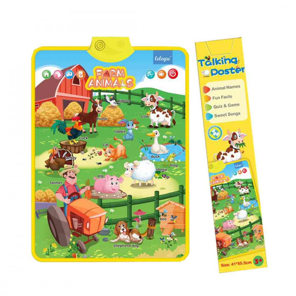 Interaktív zenélő szőnyeg a farm állataival. Ez a hangos oktatójáték kisgyermekek számára készült, akik a játékon keresztül könnyen megtanulhatják az állatokkal kapcsolatos alapvető fogalmakat. Több módon játszhat vele: tanyasi munka, szórakoztató tények, kvíz és zenei mód. A gyermek érintésével tudja aktiválni a hangokat. A haszonállatokról és a farmon végzett munkáról szóló alapfogalmak elsajatítasa mellett a motoros készségek, a hallás és az észlelés fejlesztését is segíti. A szőnyegen található motívumok ösztönzik a kéz, láb és szem koordinácioát. Falra akasztható, vagy a földön játszható vele.